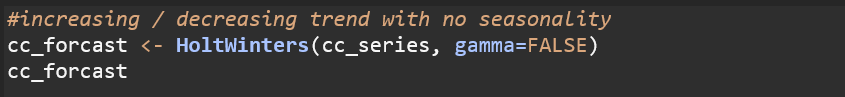 Coefficients a: This represents the smoothed estimate of the level (the overall “baseline” value of the time series). b: This represents the smoothed estimate of the trend (the rate of change over time). It indicates that, on average, the values are increasing by approximately 2.43 units per time period.